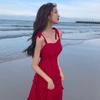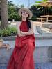 Seaside vacation style red halter suspender dress wear temperament long dress summer