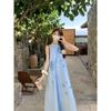 Blue three-dimensional flower neck dress women's summer gentle wind sweet first love dress temperament super fairy sleeveless holiday dress