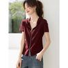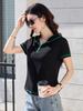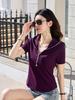 Chic commuter short-sleeved summer wear new hooded fashion zipper solid color versatile and thin short-sleeved T-shirt top