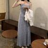 Women's summer wind floral suspender dress waist medium and long temperament seaside vacation skirt suspender