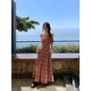 American vintage plaid sleeveless dress women's summer new niche irregular vest skirt midi length