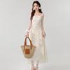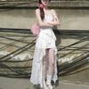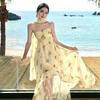 Super fairy vacation wind off-the-shoulder neck dress summer lace splicing irregular lace long dress women