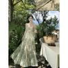Green printed neck dress women's leisure new summer seaside vacation floral temperament long skirt