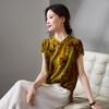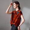 Hualuo fragrant cloud yarn women's top summer retro cheongsam loose and thin mulberry silk shirt