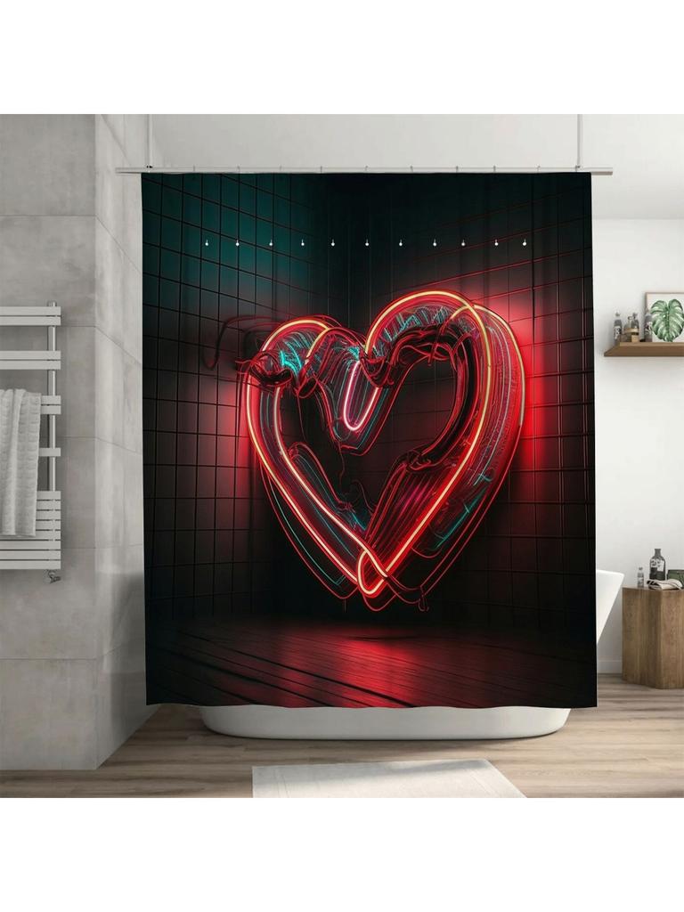 3D Neon Heart Shower Curtain | Modern and Stylish Bathroom Decor