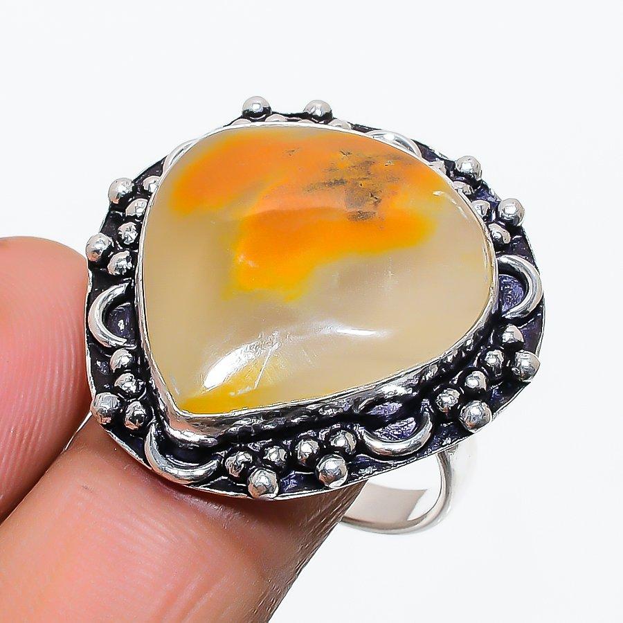 Russian Dendritic Gemstone 925 Sterling Silver Jewelry Ring Size 10 SU-10560