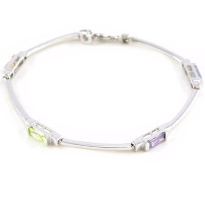 צמיד כסף, צמיד רב צבעוני תכשיטי כסף סטרלינג 925, 7.5 אינץ'