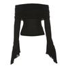 2KWEIRD Y2k אסתטי חולצות טי שירט שקופות לנשים צוואר משופע שרוול ארוך אחיד קז'ואל וינטג' חשופות כתפיים סקסי חמוד