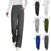 מכנסי נשים בצבע אחיד בגזרה גבוהה, מכנסי טרנינג בגזרה רפויה, מכנסי רגל ישרה