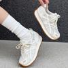Retro comfortable soft baseplate shoes women's spring new round head lace-up mesh breathable casual shoes