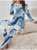 Pajama Women's Autumn and Winter Printed Lapel Long-sleeved Long Pants Home Wear Set