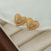 Black Enamel Bilayer Heart Stud Earrings Hollow Crystal Love Heart Earrings for Women Korean Lovely Ear Accessories brincos