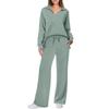 אופנה חדשה לאביב ולסתיו, בגדי נשים קז'ואל אופנתיים, סט מכנסי קומיוטר בצבע אחיד עם שרוולים ארוכים ושרוך קשירה