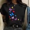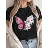 חולצת טי לנשים עם הדפס אופנתי של פרחים ופרפרים, שרוול קצר קז'ואל, חולצת טי לנשים, חולצה עליונה לבגדים, חולצת טי גרפית לנשים