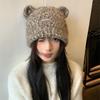 New Autumn and Winter Cute Bear Hat for Women Knitted Versatile Warm Ear Protection Thickened Fashionable Wool Fisherman Hat