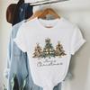 (Asian Size) Merry Christmas Tee Top festival New Year Holiday Casual tree printing Women Print Lady Short Sleeve Fashion Graphic T-shirts
