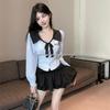 חולצות נשים לבנות Y2k שרוול ארוך חולצות רקומות עם קשירה אופנה קוריאנית סלים לוליטה הרג'וקו חולצות JK