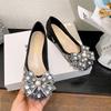 Spring New Shoes for Women Modern Pumps Round Toe Bowknot High Heels Shoes Ladies Pearl Chain Boat Shoes Big Size