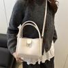 Fashion trend women's bag new simple solid color shoulder messenger bag texture retro bucket bag