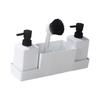 Ceramic Liquid Soap Pump with Built-in Brush Caddy Multi-Purpose Dispenser Kitchen and Bathroom Heavy Duty Easy One-Handed Use