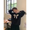 Autumn and winter cute girl feeling full of new loose versatile bow round neck knitted pullover sweater women