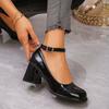 Fashion High Heeled Shoes for Women 2025 New Retro Patent Leather Shallow Mouth Single Shoes with a Single Buckle and Thick Heels