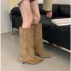 Fashion 2025 New Kid Suede Retro Women Boots Autumn Winter Slip-On Boots for Women Pointed Toe Square Heel Basic Shoes Knee-high boots