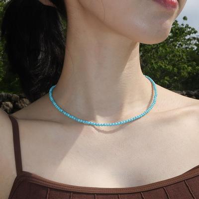 Hiba Blue Turquoise Silver Ball 925 Silver Layered Necklace