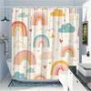 Cartoon Cute Shower Curtain, Funny Animals Cat Rainbow Colorful Butterfly Kids Boys Girls Bathroom Bathtub Screen Decoration