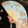 Portable Hand Fold Fan Chinese Style Dance Props Retro Shell Fan Woman Men Bamboo Wood Silk Flower Folding Fan