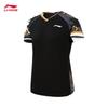 סדרת בדמינטון לי נינג חולצת טי שירט שרוול קצר ספורט לאימונים ותחרויות צווארון עגול נושמת מנדפת זיעה לנשים שחור AAYV036-1