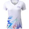 Li Ning Badminton Series Graffiti Letter Print V-Neck Short Sleeve T-Shirt Women Tops Light-Blue Purple AAYV048-4