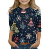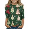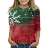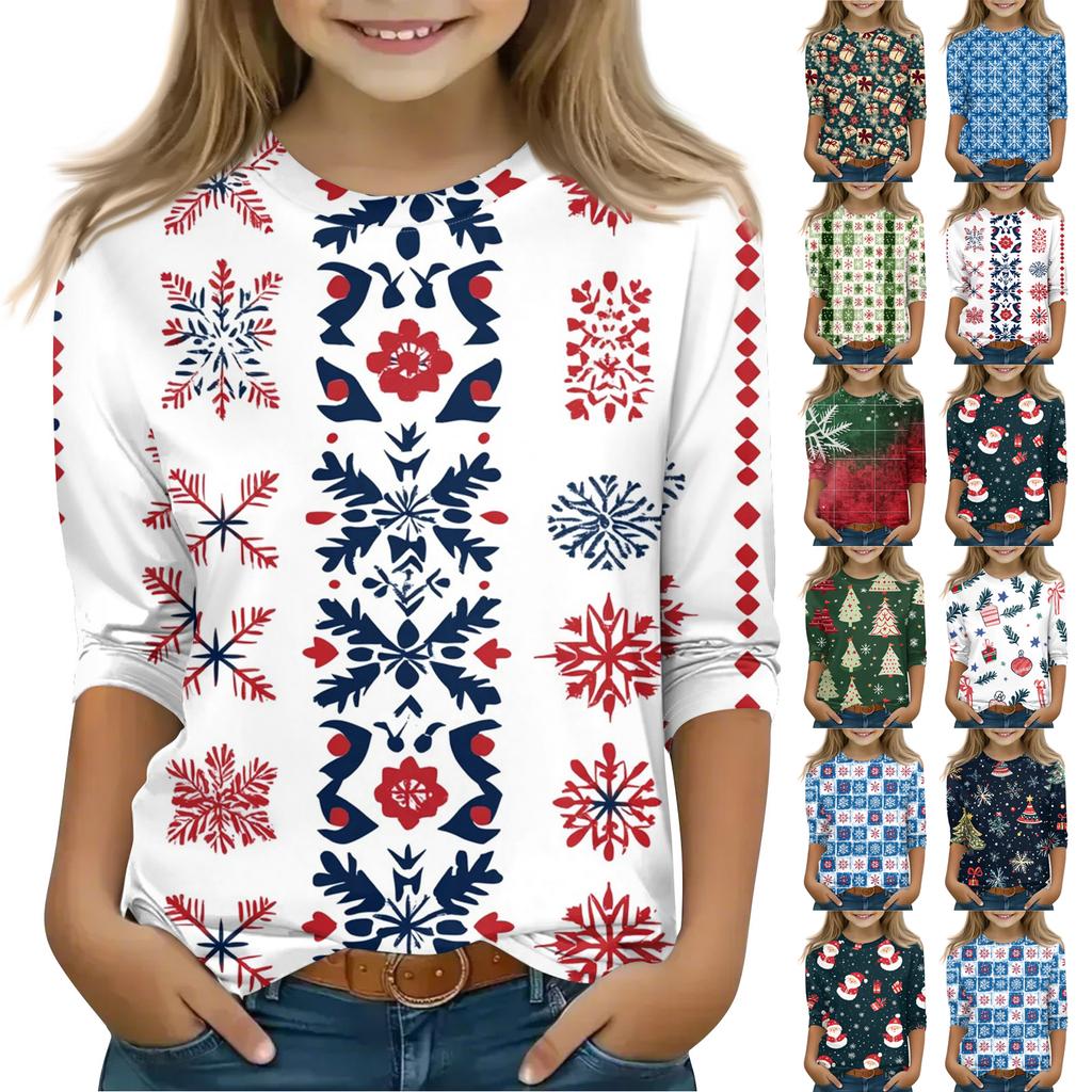 חולצות מודפסות ליום חג המולד לבנות צעירות בגילאי 5-16 צווארון עגול שרוולי 3/4 חולצות טי טופים אופנתיים חולצות להרכבת אאוטפיט