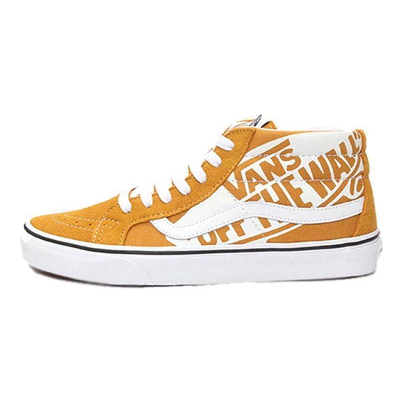 Vans Sk8 Reissue All Over Logo Mid-Top Skate Shoes Unisex Skate Shoes Yellow VN0A391FTY7
