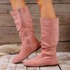 Fashion Autumn Winter Pink Mid Calf Boots Women 2025 Fashion Faux Suede Pleated Boots Woman Plus Size 36-42 Flat Heel Long Botas Mujer
