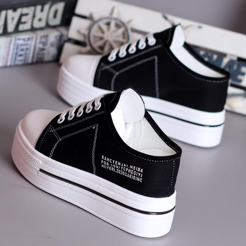 Fashion Cover Toe Shoes Womens Slippers Outdoor Pantofle Slides Fashion Increased Internal Platform 2025 Summer Luxury Fabric Canvas