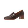 Fashion 2025 New Genuine Leather Women Shoes Fashion Square Toe Slip-On Shallow Pumps Thick Heel Spring Shoes Women Zapatos De Mujer