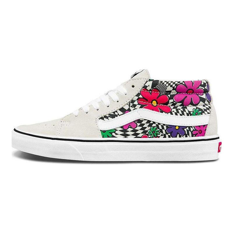 Vans Sk8 Cushioning Durable Lightweight Breathable Mid-Top Skate Shoes Women Sneakers White Gray Floral VN0A3WM340G