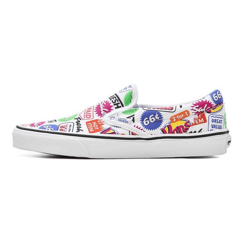 Vans Slip-On Series Mini Supermarket Series Canvas Fun Graffiti Colorful Tags Casual Low-Top Skate Shoes Unisex sneaker Black VN0A33TB44C