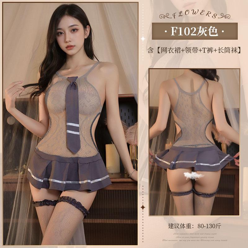Sex underwear sexy sweet cool school girl mesh dress set school girl student uniform stockings integrated skirt splicing