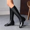 מגפי חורף לנשים עם בוהן מרובעת עד הברך לבן שחור עקב בלוק נמוך אופנתי שמלה גברת משרד חם קטיפה רוכסן מגפי רכיבה ארוכים
