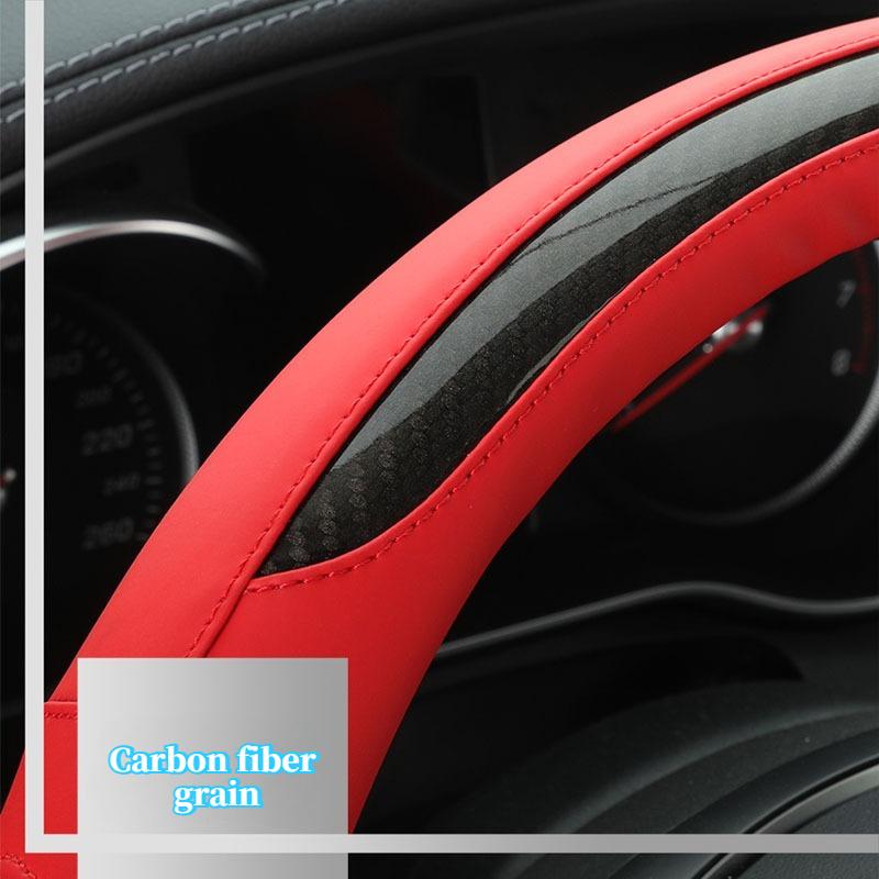 Premium Perforated PU Leather & Carbon Fiber Steering Wheel Cover, Non-Slip & Breathable, Universal Fit for 14.5-15 Inch Wheels
