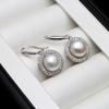 עגילי פנינה לבנה טבעית מים מתוקים לחתונה כסף 925 לאישה, עגילי פנינה עגולים לכלה תכשיטים משובחים מתנה למסיבה לאישה לאמא