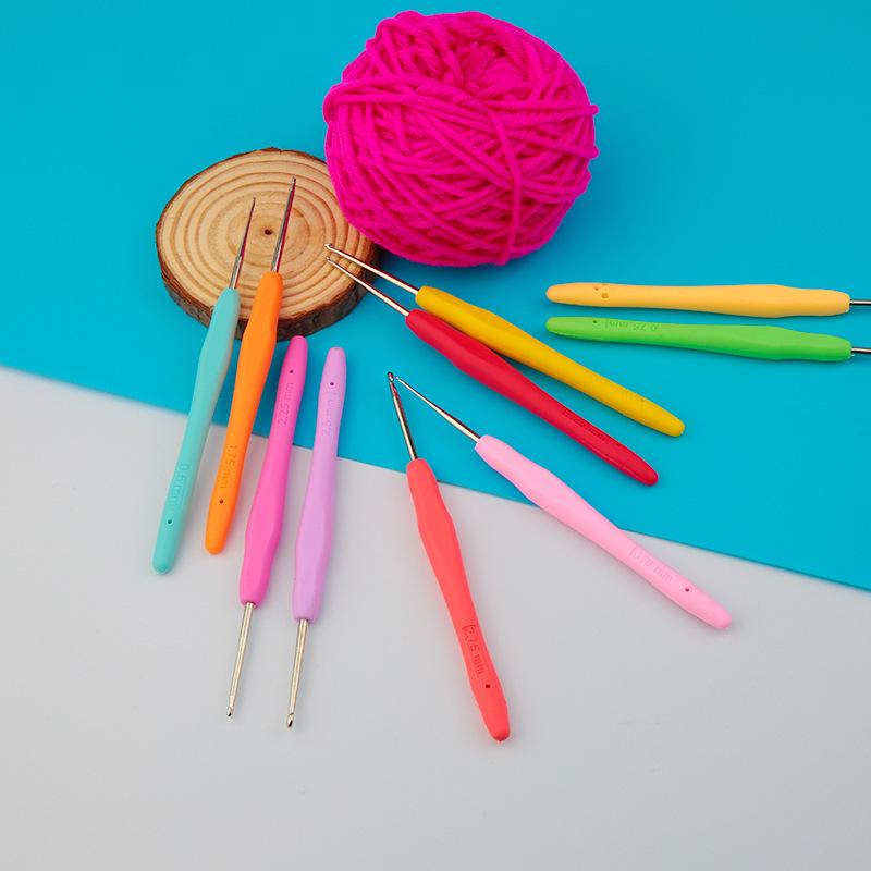 Colorful Metal Crochet Hook with Plastic Handle for DIY Knitting