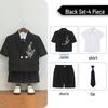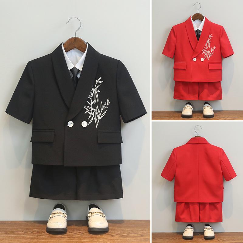 This stylish summer suit is perfect for little boys attending weddings or special occasions. It features a short-sleeve design, ideal for keeping cool in warmer months. The suit is crafted from high-quality polyester, ensuring comfort and durability for active wear. The set is beautifully embroidered, adding an elegant touch to the traditional Chinese style, making it a charming outfit choice for memorable events.