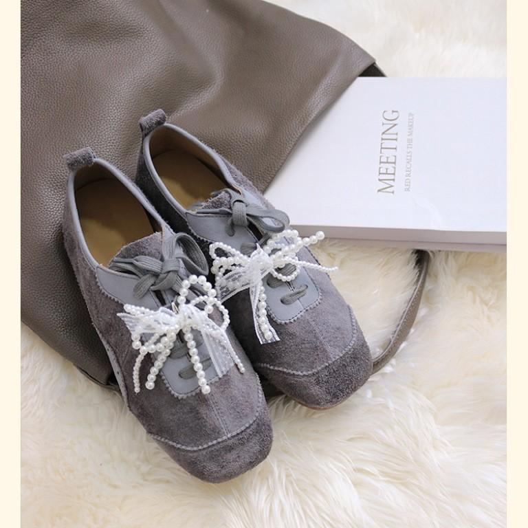 Lace-up mid-mouth single shoes women's 2025 spring and autumn new Korean version color matching casual Doudou shoes women's versatile soft-soled small