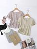 Tencel knitted round neck short-sleeved t-shirt women's summer new casual and thin simple loose pullover