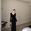 Temperament black V-neck knitted dress, high-end sense, super good-looking bottom skirt, skirt with coat in winter