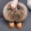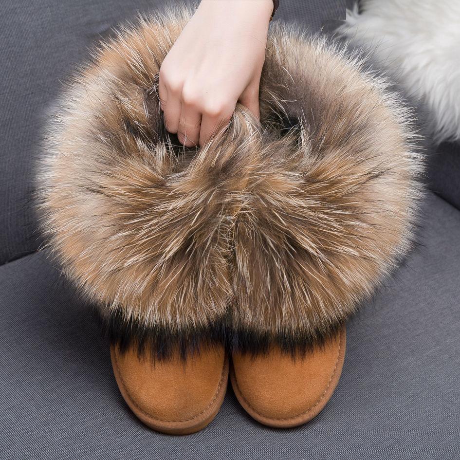 מגפי צמר כבשים לנשים מגפי שלג פרווה מלאכותית נעליים מגפי פרוות כבשים מעור פרה נעלי חורף שטוחות חמות
