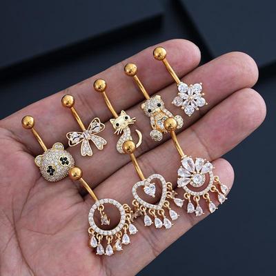 אופנה קריסטל זירקון טיפת מים קשת טבעת פופיק לב פנדה פירסינג בטבור לנשים תכשיטי גוף לחוף הים